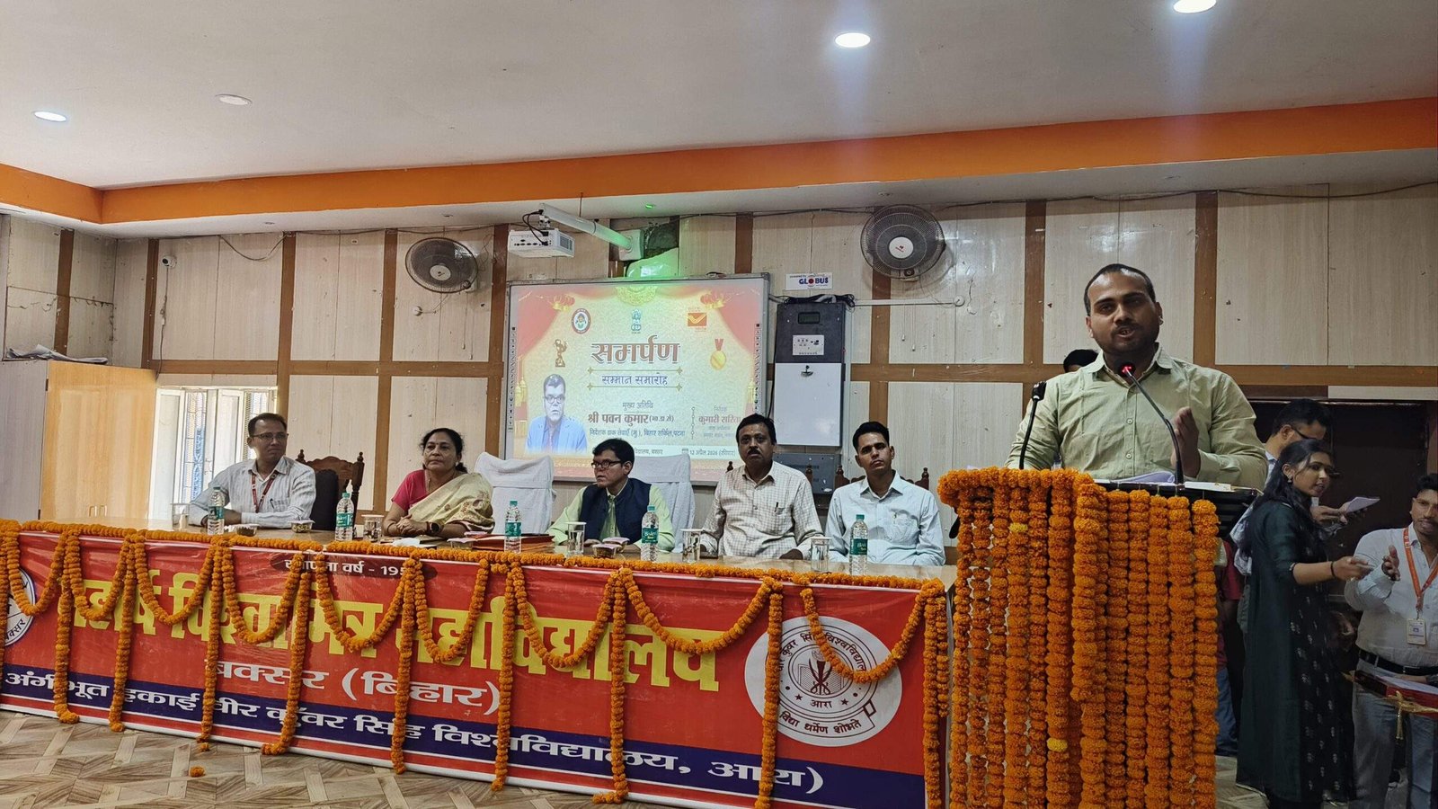 बक्सर: नगर के एमवी कॉलेज परिसर स्थित मानस भवन में डाक विभाग बक्सर मंडल द्वारा समर्पण सम्मान समारोह का भव्य एवं गरिमामय आयोजन किया गया। इस अवसर पर जिले के विभिन्न डाकघरों एवं इकाइयों में कार्यरत उन कर्मियों को सम्मानित किया गया, जिन्होंने उत्कृष्ट कार्य, लक्ष्य प्राप्ति एवं जनसेवा के क्षेत्र में उल्लेखनीय योगदान दिया है।