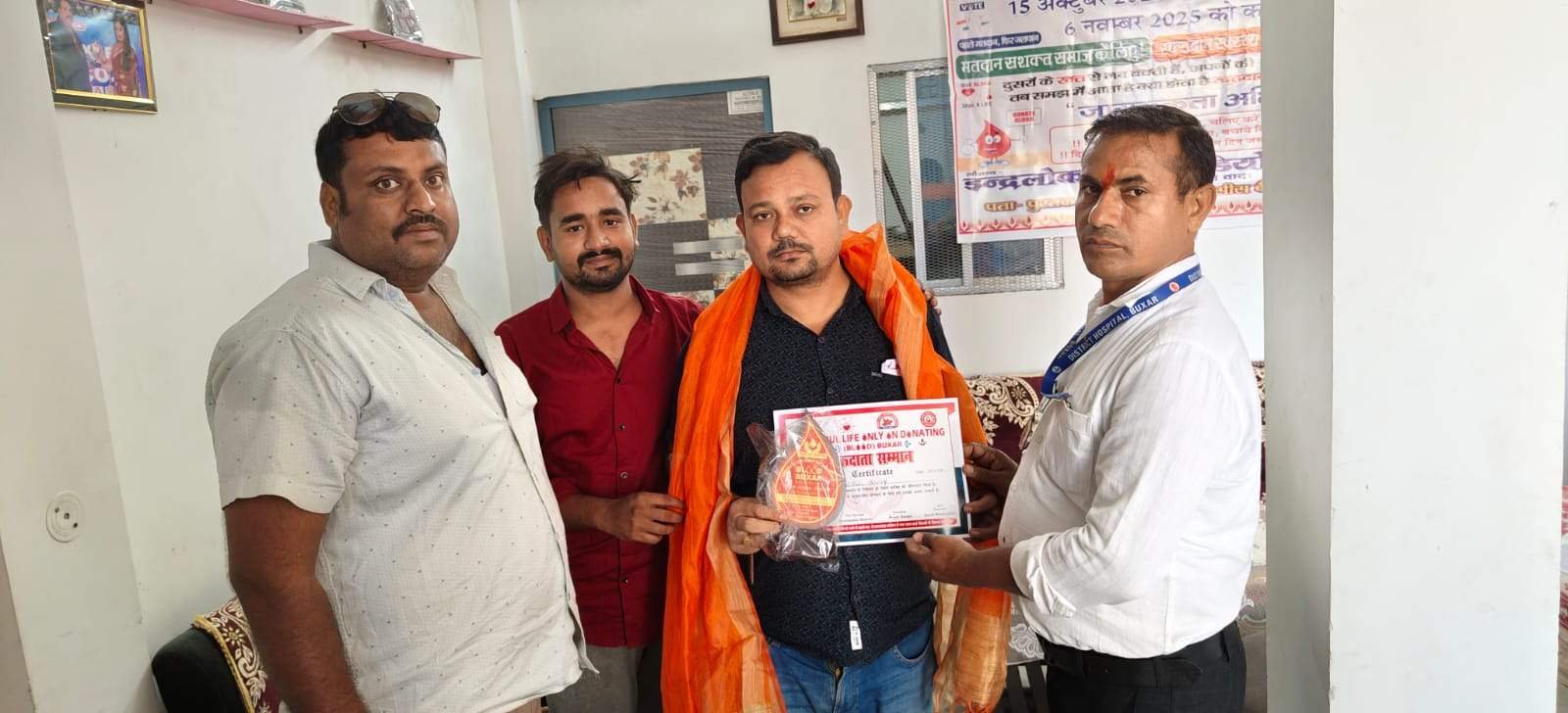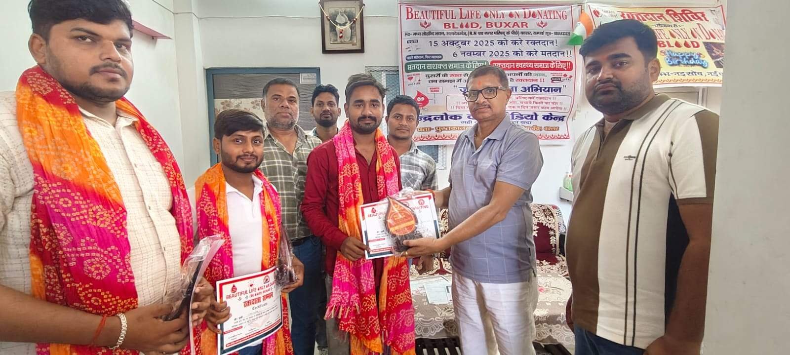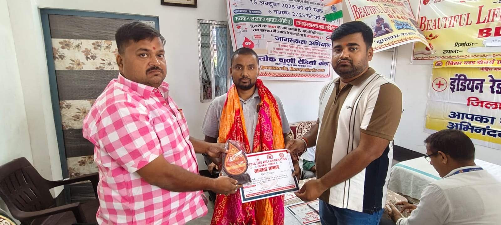 रक्तदाताओं को मोमेंटो और सर्टिफिकेट देकर ब्लड बक्सर टीम द्वारा सम्मानित किया गया।