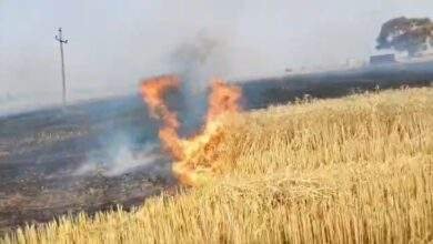 हार्वेस्टर की चिंगारी से लगी भीषण आग, ढाई एकड़ गेहूं की फसल जलकर राख